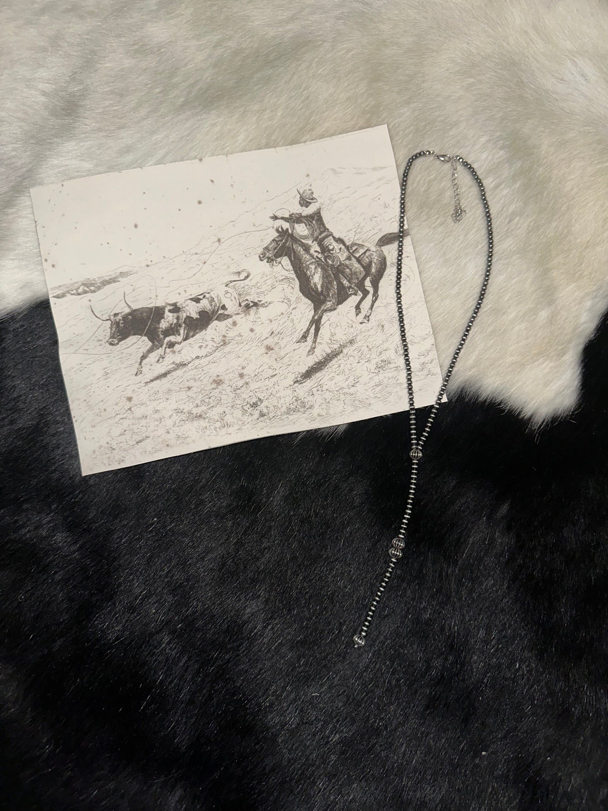 Faux Navajo Pearl Lariat Necklace