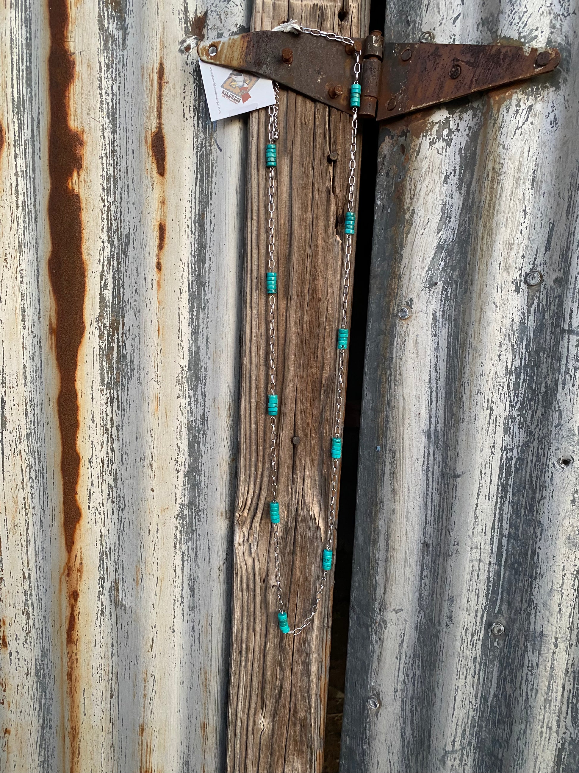 Multi Way Chain Lariat Link Necklace with Turquoise Accents